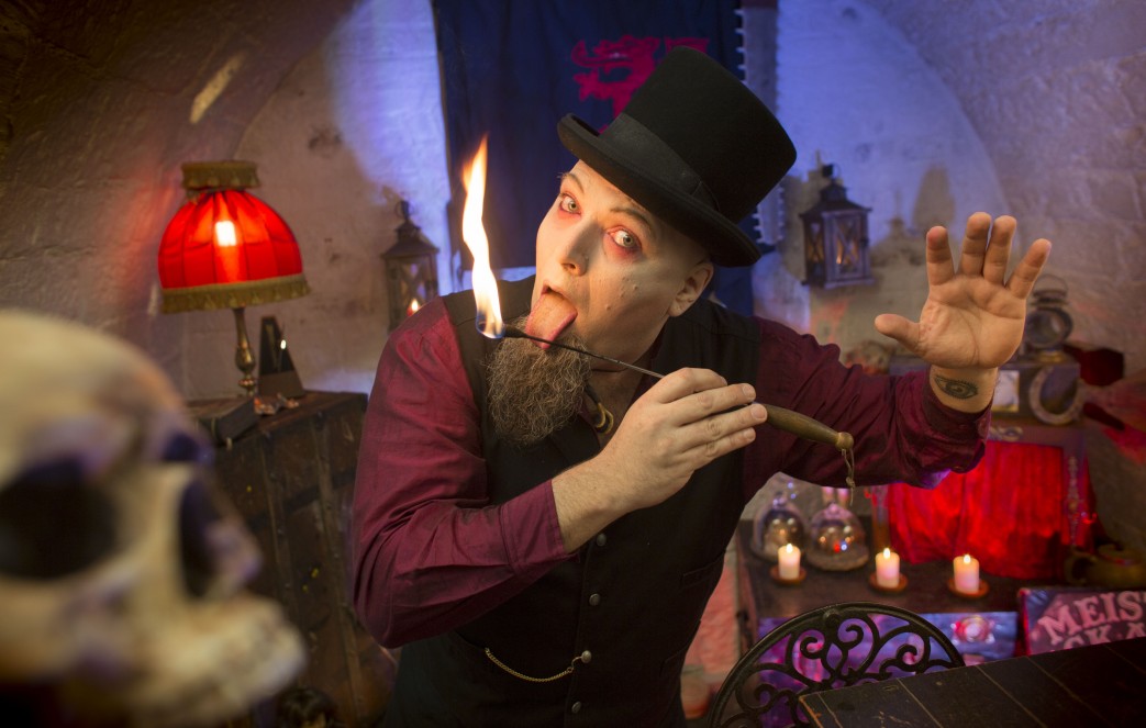 Beim ersten deutschen SchaubudenZauberVarieté laden Meister Eckart, der Grandseigneur der gepflegten Jahrmarktsunterhaltung und die Sideshow Charlatans seit 2015 zum zauberhaften Stelldichein. Sie sind die Rolling Stones unter den Schaubudenzauberern, die 3-faltigkeit der merkwürdigen Phänomene und die Allstars des Obskuren, kurz: drei Brachailromantiker auf dem Weg zum Bühnenolymp. Nicht mit Pauke und Trompete, sondern mit Drehorgel und singender Säge, werden hier - in bester Wanderzirkusmanier - optische Täuschungen, Hypnose, Hellseherei, Schnellrechnen, Seancen, Fakirkunst und allerlei wundersam Magisches mehr zur Schau gestellt. Mit diesem Abendprogramm haben Meister Eckart und die Sideshow Charlatans ein einmaliges Kleinod geschaffen. Eine Hommage an eine vergessene Welt, die es so nie gab. Nicht altbacken, sondern stilvoll inszeniert, stellt sich bei den Zuschauern von der ersten Minute an ein wohlig nostalgisches Gefühl ein. "Ein Potpourri des Seltsamen. Mehr Jahrmarkt geht nicht!" (Pressestimme). Das SchaubudenZauberVarieté ist die etwas andere Zaubershow, bei der man nur wenig falsch machen kann (außer nicht hinzugehen). Aber Eile ist geboten, denn es gibt "Nur noch wenige Restkarten"! Bei den Premieren in der Prignitz und in Neu-Ulm (beide mit spontanem Zusatztermin wegen der großen Nachfrage!) war die Show innerhalb kürzester Zeit ausverkauft und wurde von Publikum und Presse gefeiert! Jetzt schnell den Wunschtermin buchen!